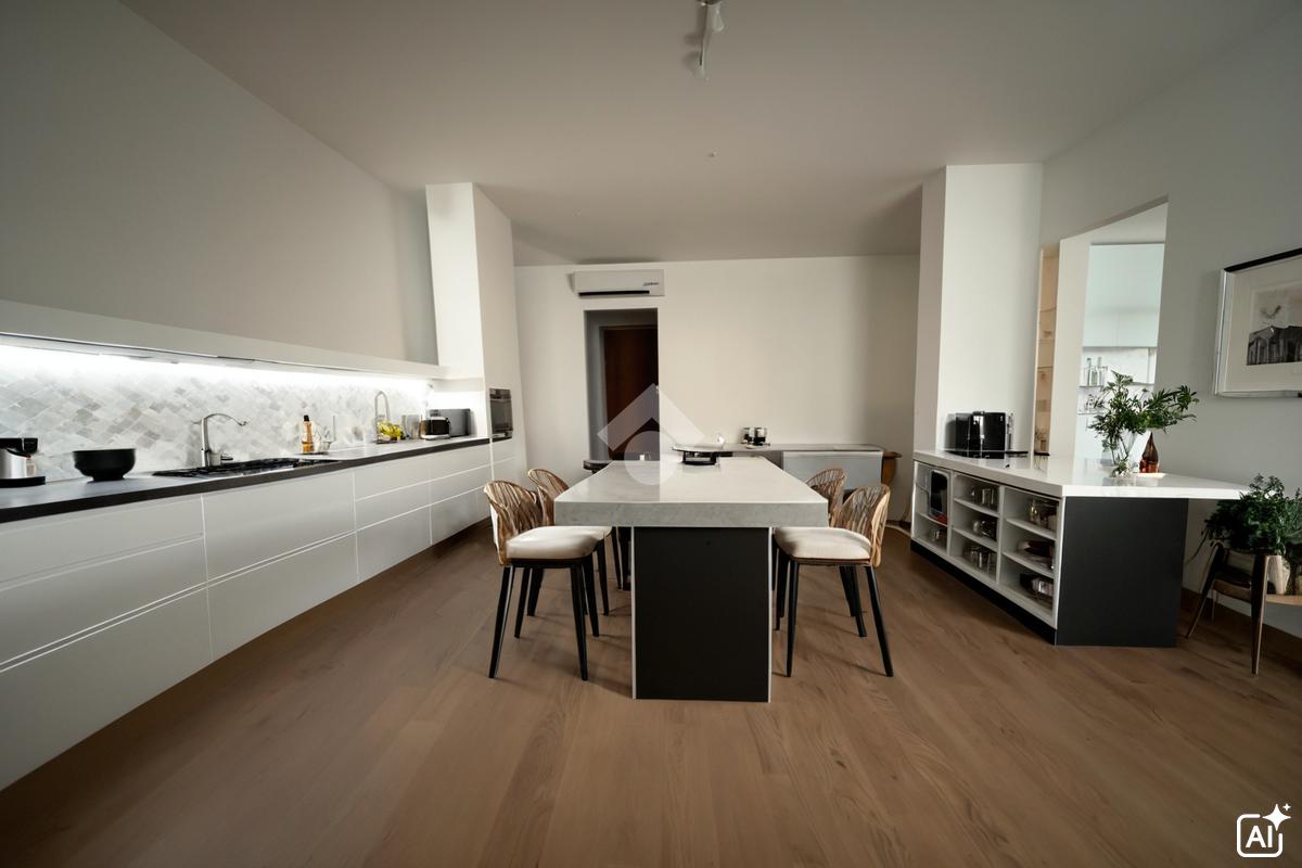 E' composto da un ampia zona giorno , due camere, due bagni e un terrazza loggiata ideale per mangiate all'aperto.