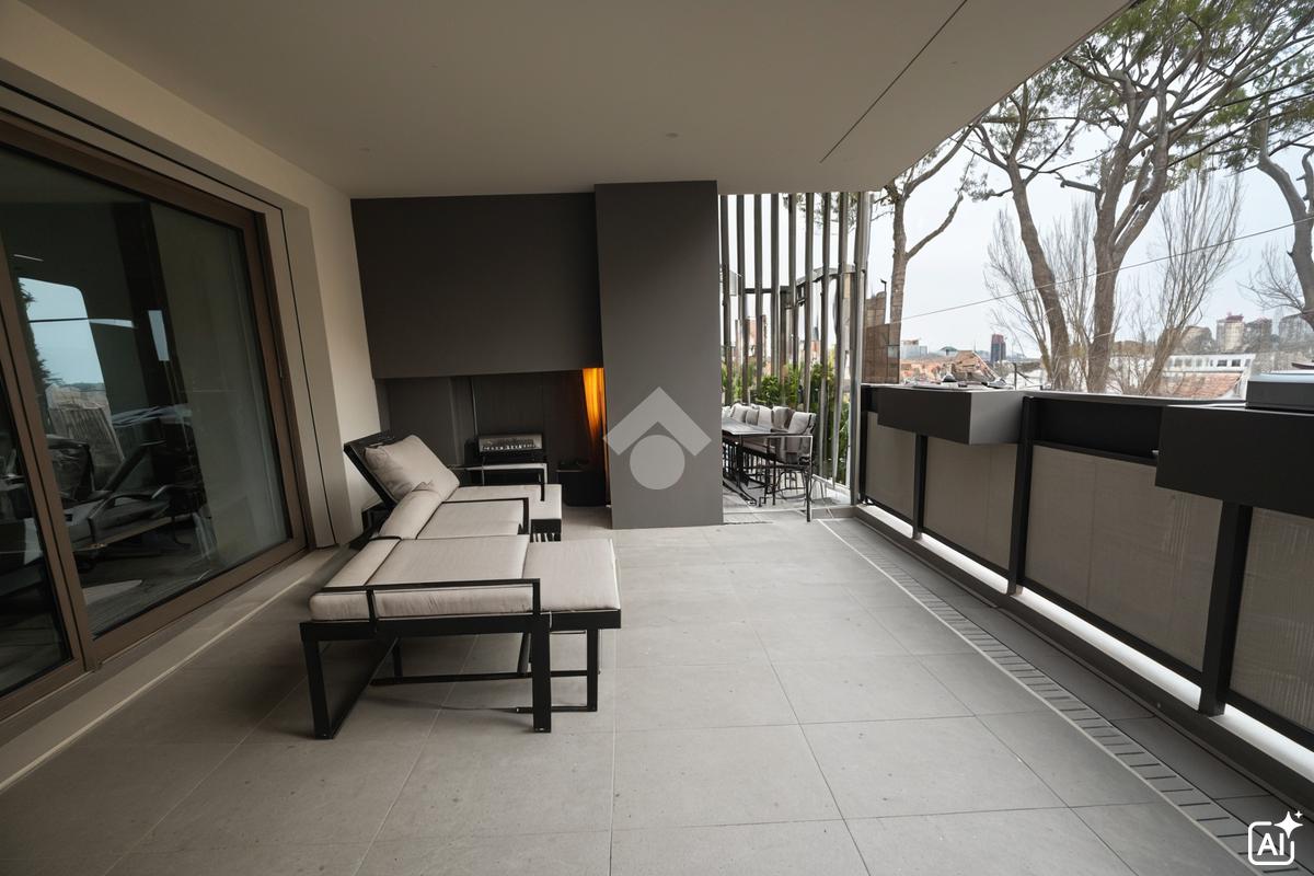 E' composto da un ampia zona giorno , tre camere, due bagni e un terrazza loggiata ideale per mangiate all'aperto.