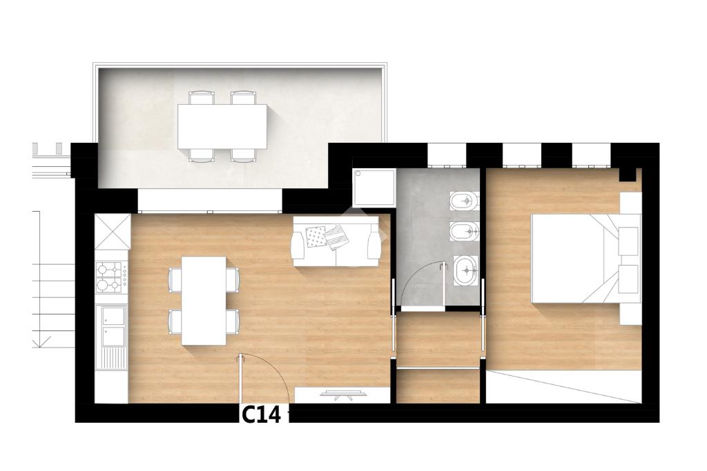 RIVABELLA: Appartamenti in prossima realizzazione all'interno di un area verde nuova ed esclusiva, a pochi passi dal mare! Le tipologie di bilocali presentano un ampia zona giorno composta da soggiorno con angolo cottura servito da balcone o giardino, una camera matrimoniale e un bagno con box doccia.
