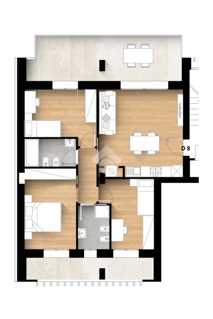 Le immagini sono a scopo illustrativo. I pavimenti e gli infissi sono personalizzabili.