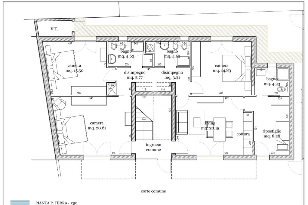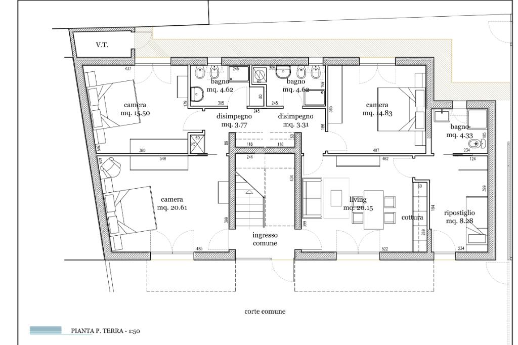 Oggi l'appartamento è in uso dai proprietari come struttura ricettiva e suddiviso in tre appartamenti, sarà loro cura in fase di vendita ripristinarne le unità.