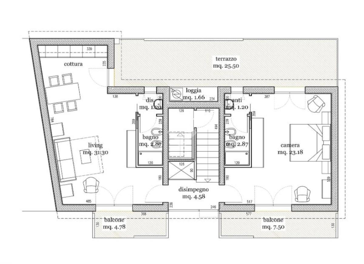 Oggi l'appartamento è in uso dai proprietari come struttura ricettiva e suddiviso in due appartamenti, sarà loro cura in fase di vendita ripristinarne le unità.