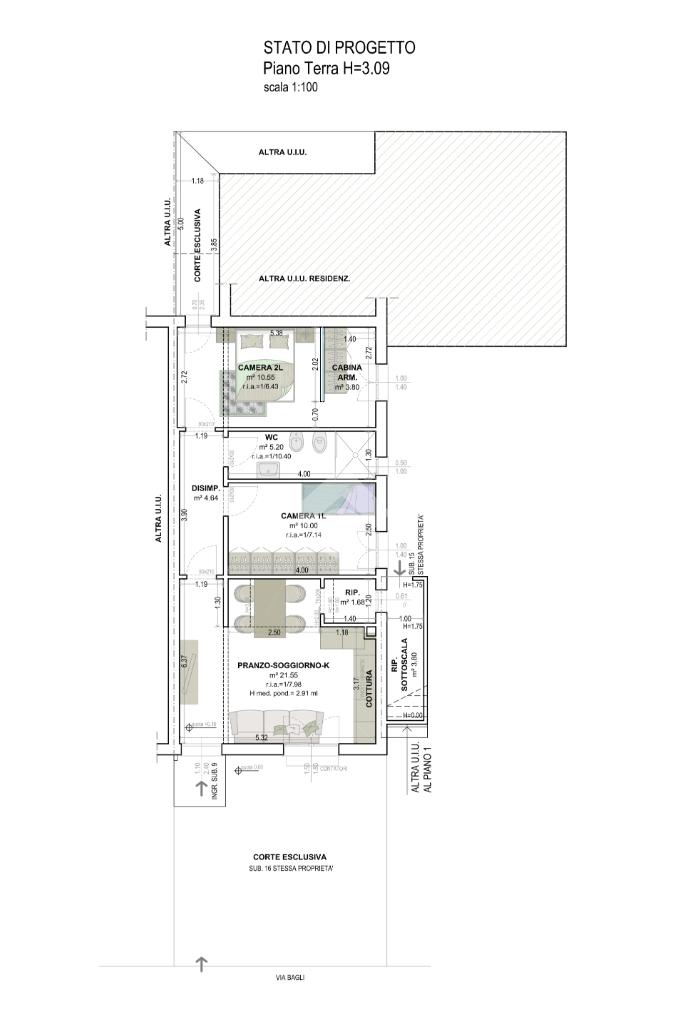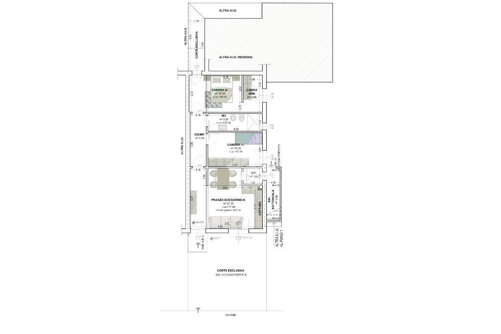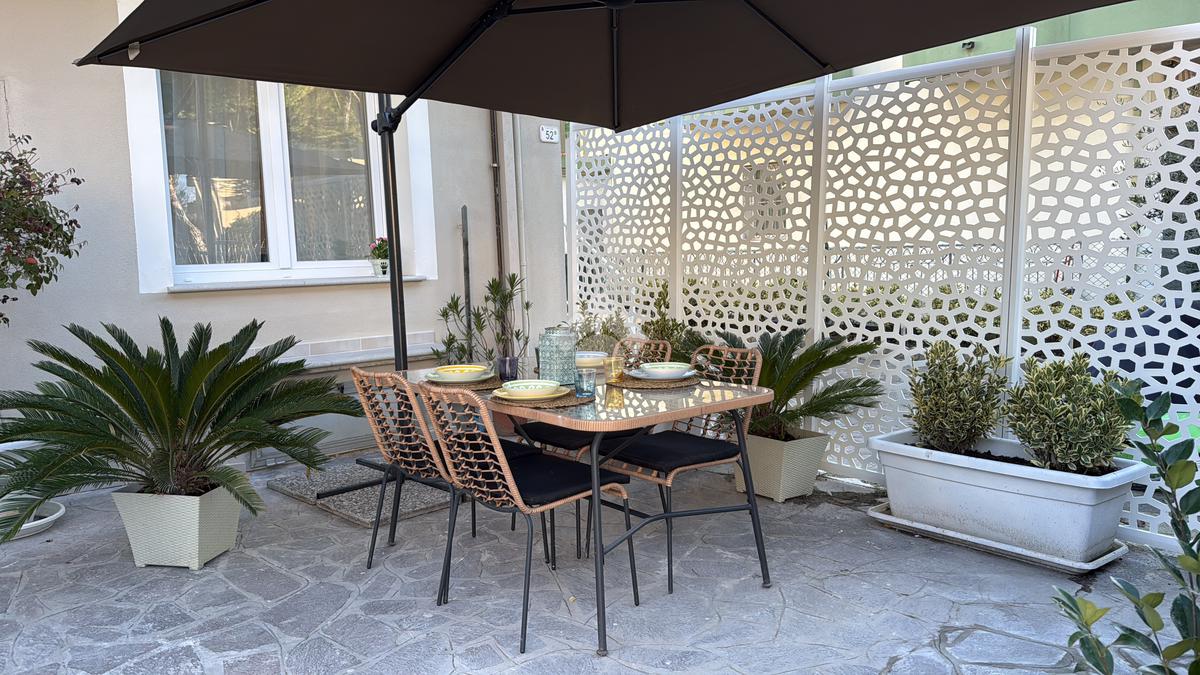 Appena varcato l’ingresso indipendente, ci si ritrova in una corte–giardino privata, un piccolo angolo verde da vivere in ogni stagione, perfetto per chi desidera intimità e tranquillità pur restando nel cuore di Rimini, in una elegante trifamiliare.