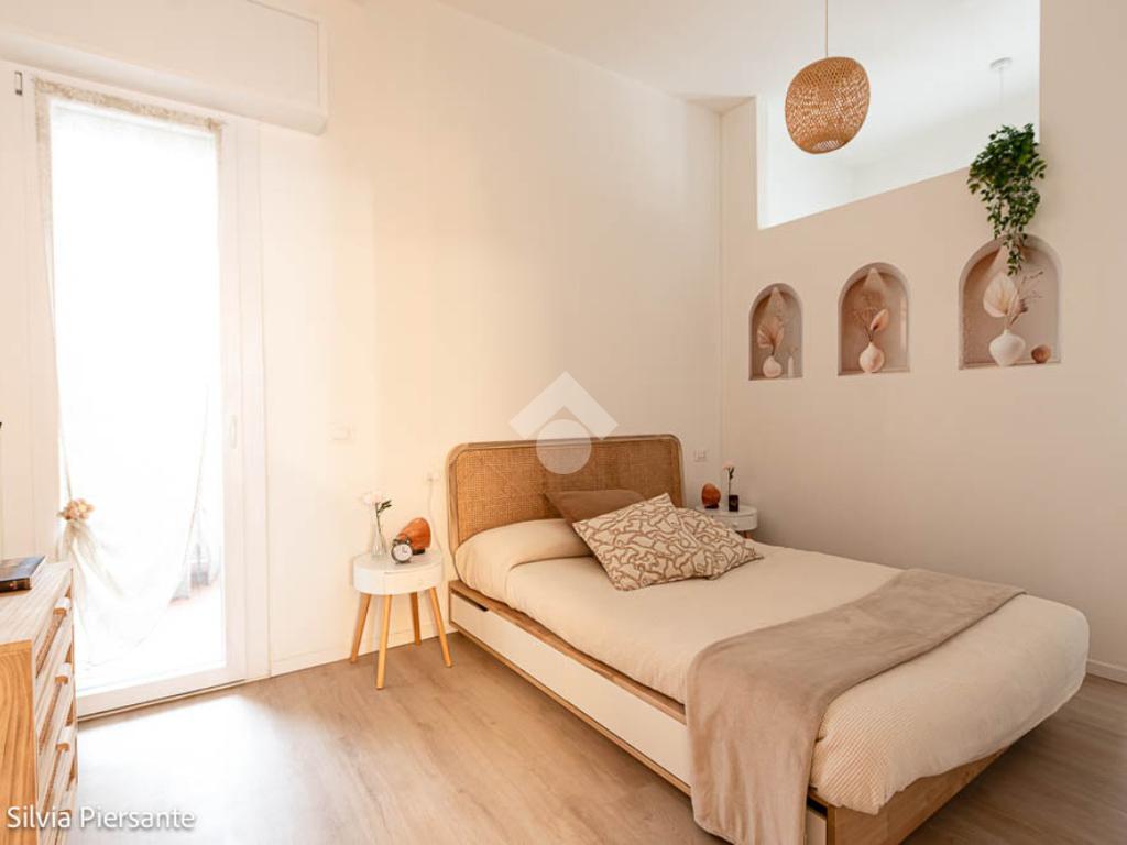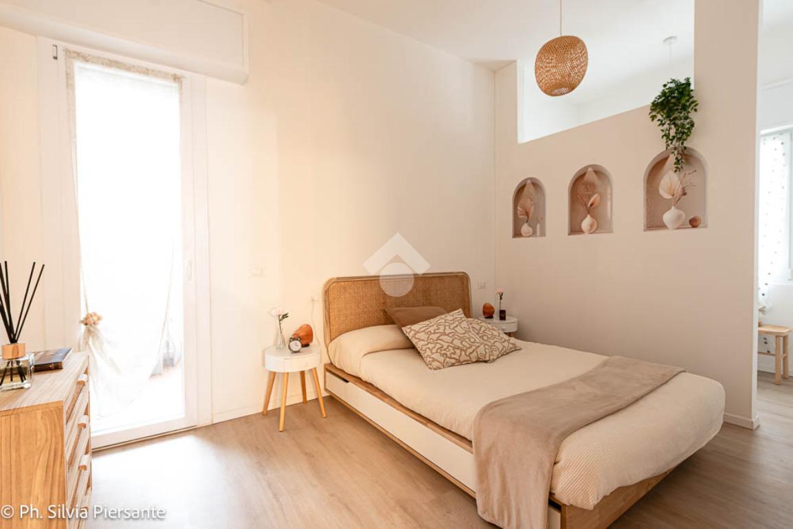 Infine, la camera matrimoniale padronale: ampia, elegante, con una cabina armadio dedicata e un delizioso affaccio su una piccola corte privata, ideale per momenti di calma, letture lente o colazioni riservate.