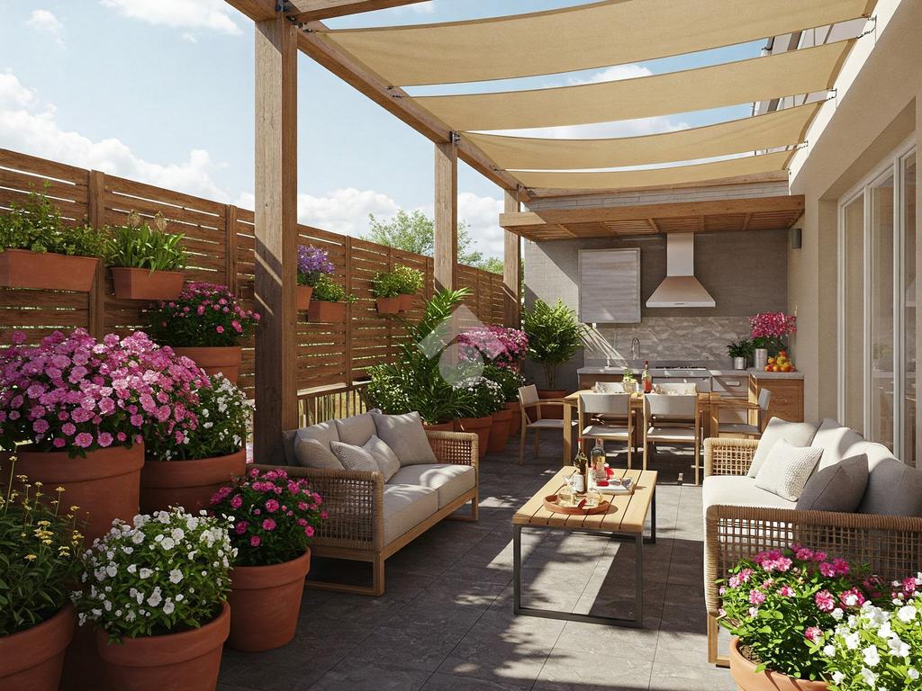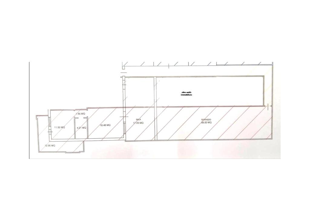 L'appartamento è posto al primo piano. Un ampio terrazzo ad uso esclusivo ci accompana all'interno della soluzione. L'appartamento all'interno è composta da cucina /soggiorno, bagno e camera da letto matrimoniale servita da un ulteriore balcone. Per sfrutturare al meglio la zona giorno vi è un ulteriore ambiente living di 15 mq pergolato e riparato.