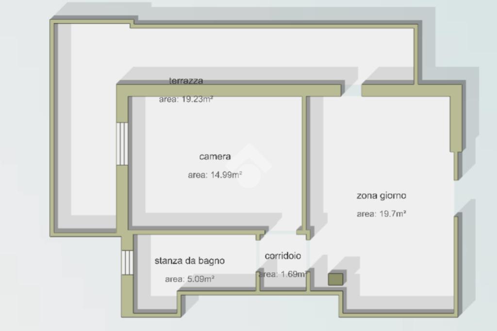 L'appartamento è composto da soggiorno con cucina, camera da letto e bagno.