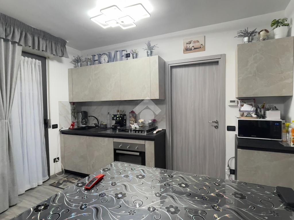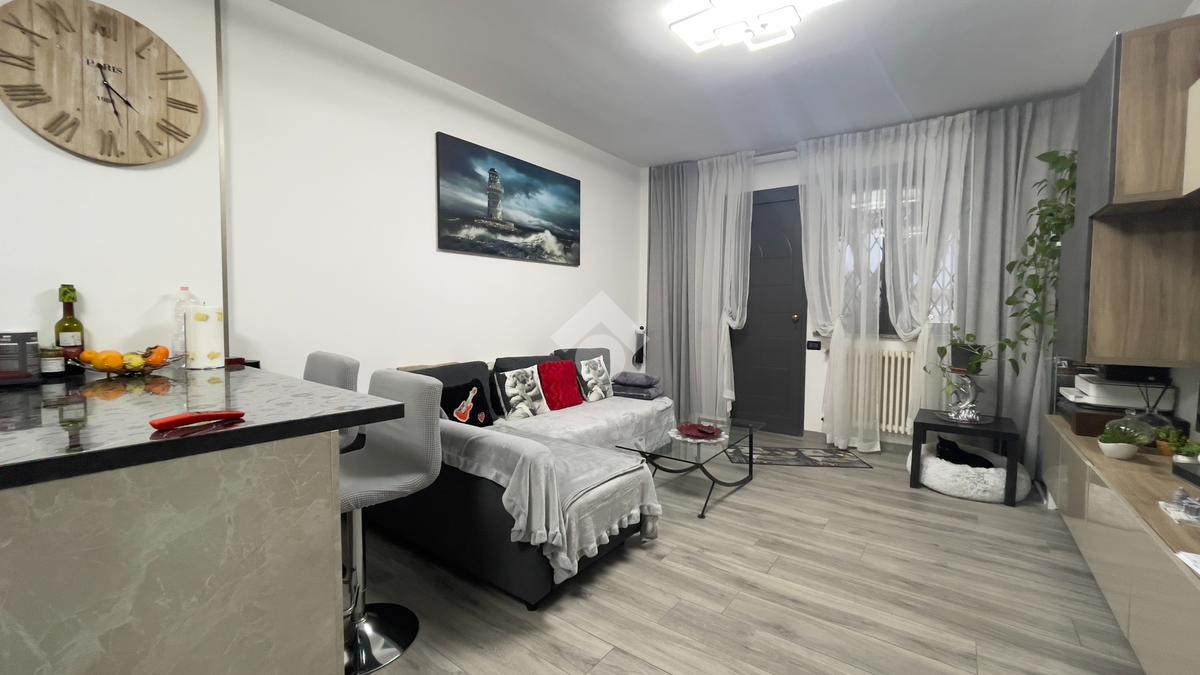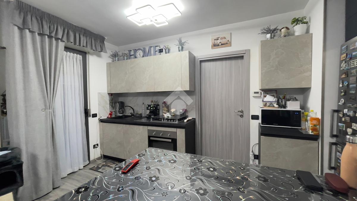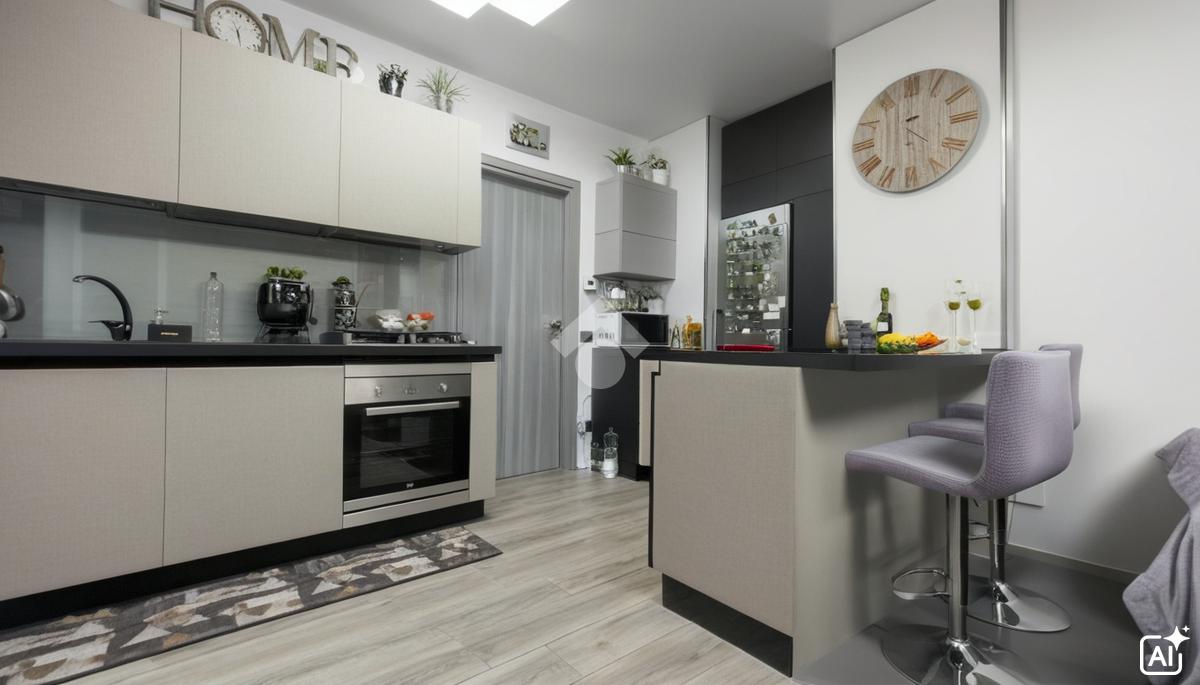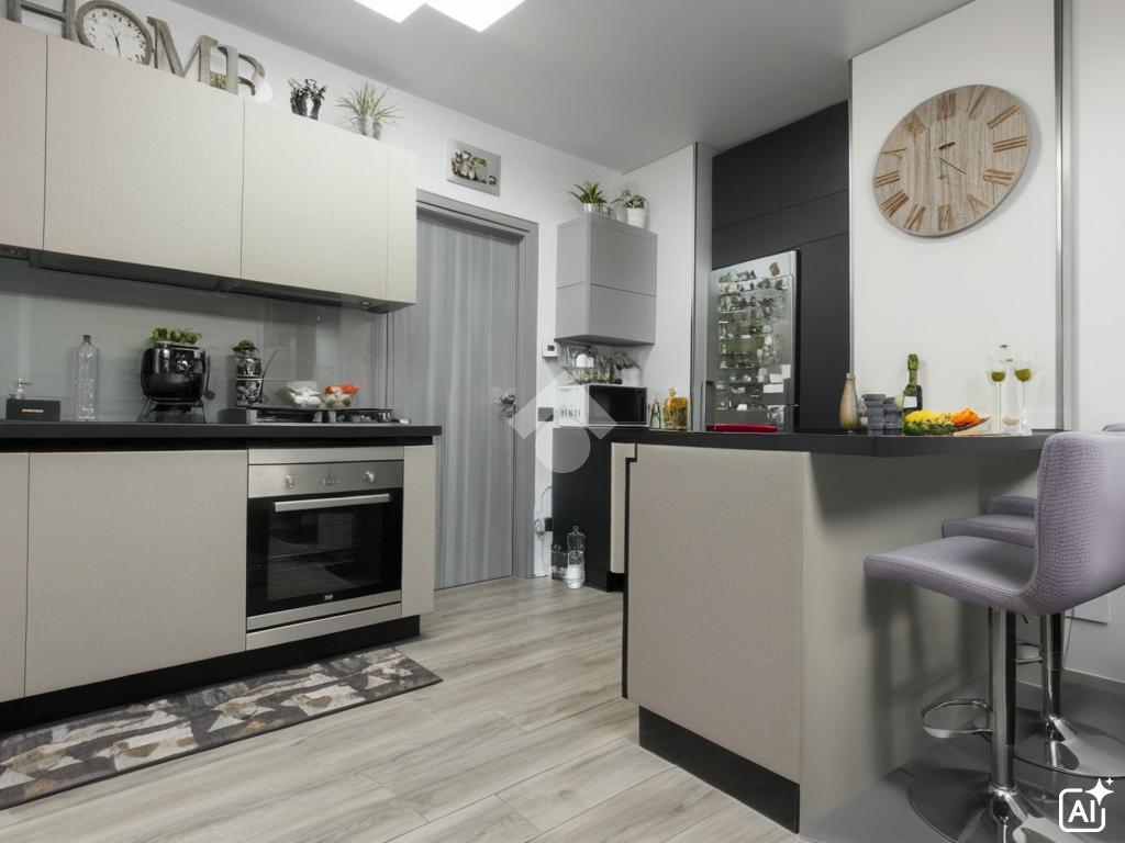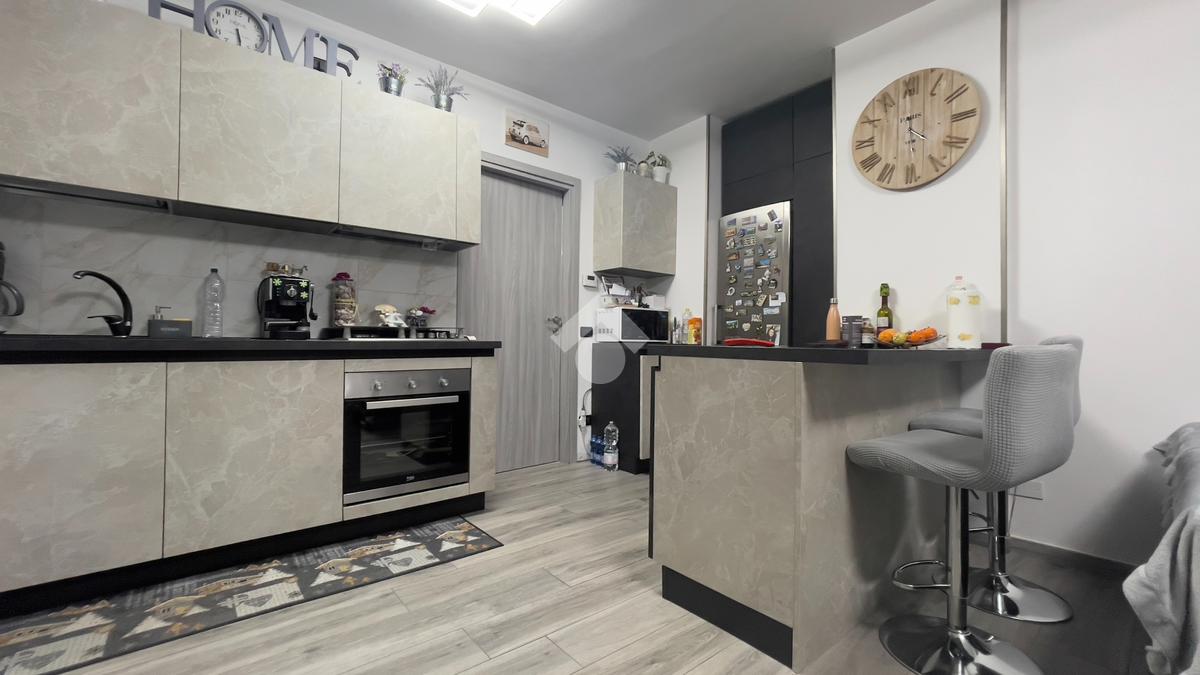 Entrando troviamo una zona giorno open space con cucina fatta su misura.